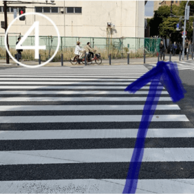 - スクランブル交差点に当たりましたら、左へ渡ります。
