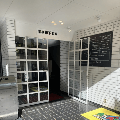 - ファミリーマート、⾼級パン乃が美を通り過ぎて、横断歩道を渡つににあるビルの3階になります。